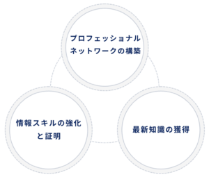 - 委員会活動: 各種委員会(会誌編集、研修、シンポジウム、試験実施、著作権、標準化など)における委員としての共同活動を通じたより深い人脈形成