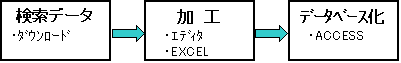 | [第一部] エディタを使って検索データを加工して、Excelに読込ませる方法。 検索データを表形式で見やすいように加工します。 (2000年に京都で2回開催された「検索データ加工術入門」のダイジェスト版であり、更に新機能を+αした内容です) [第二部] 第一部で加工したデータをAccessに読込ませてデータベース化。 ExcelとAccessの違い、Accessの仕組み、Accessでの検索と出力・・・ エディタやExcelは使えるが、もうワンランクアップしてAccessを使ってみたい方を対象としています。 Accessを使ったことが無い方、データベース作成経験の無い方、是非ご参加下さい。 (パソコンによる実習はありません。) |