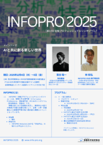 INFOPRO(情報プロフェッショナルシンポジウム)とは、情報を司る専門家(Information Professional、情報専門家)のためのシンポジウム(研究発表会、討論会)です。