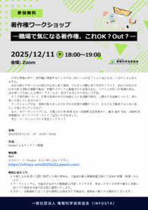 ※ 当日、急なご予定でご参加いただけない方のためにも、見逃し配信(アーカイブ公開)を期間限定(2026年1月10日まで)行います。動画URLは、開催翌日、本ワークショップの参加申込者の皆様にご連絡させていただく予定です。